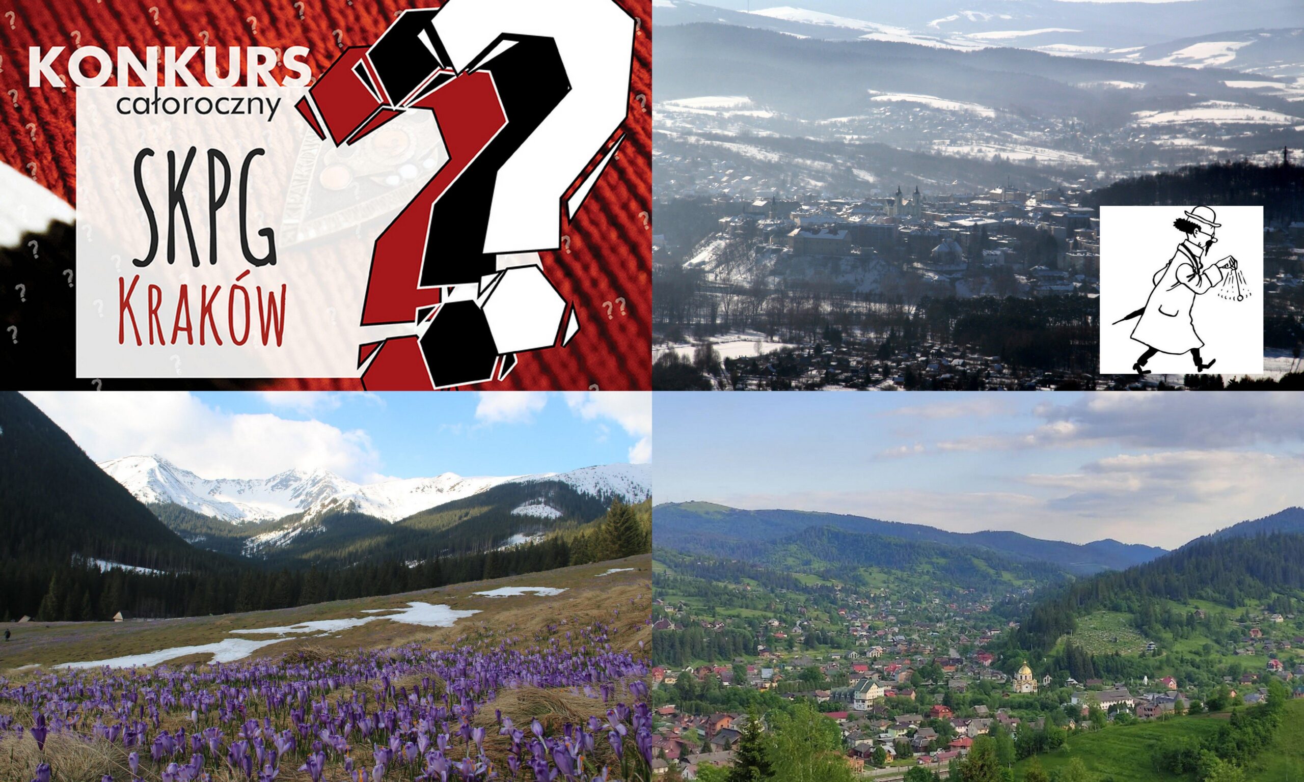I tak to, doskonale rozgrzani, gotowi jesteśmy na XXVII edycję Konkursu Całorocznego. Regulamin znajdziecie tutaj https://skpg.krakow.pttk.pl/konkurs-caloroczny/ W skrócie: co miesiąc publikujemy dwa pytania i przez cały ten miesiąc czekamy na Wasze odpowiedzi przysyłane mailem na adres konkurs.skpg@gmail.com. Za prawidłowe odpowiedzi otrzymujecie punkty – cały konkurs podsumowujemy na początku grudnia. Od czasu do czasu zdarzają się nam pytania i nagrody specjalne w trakcie roku.